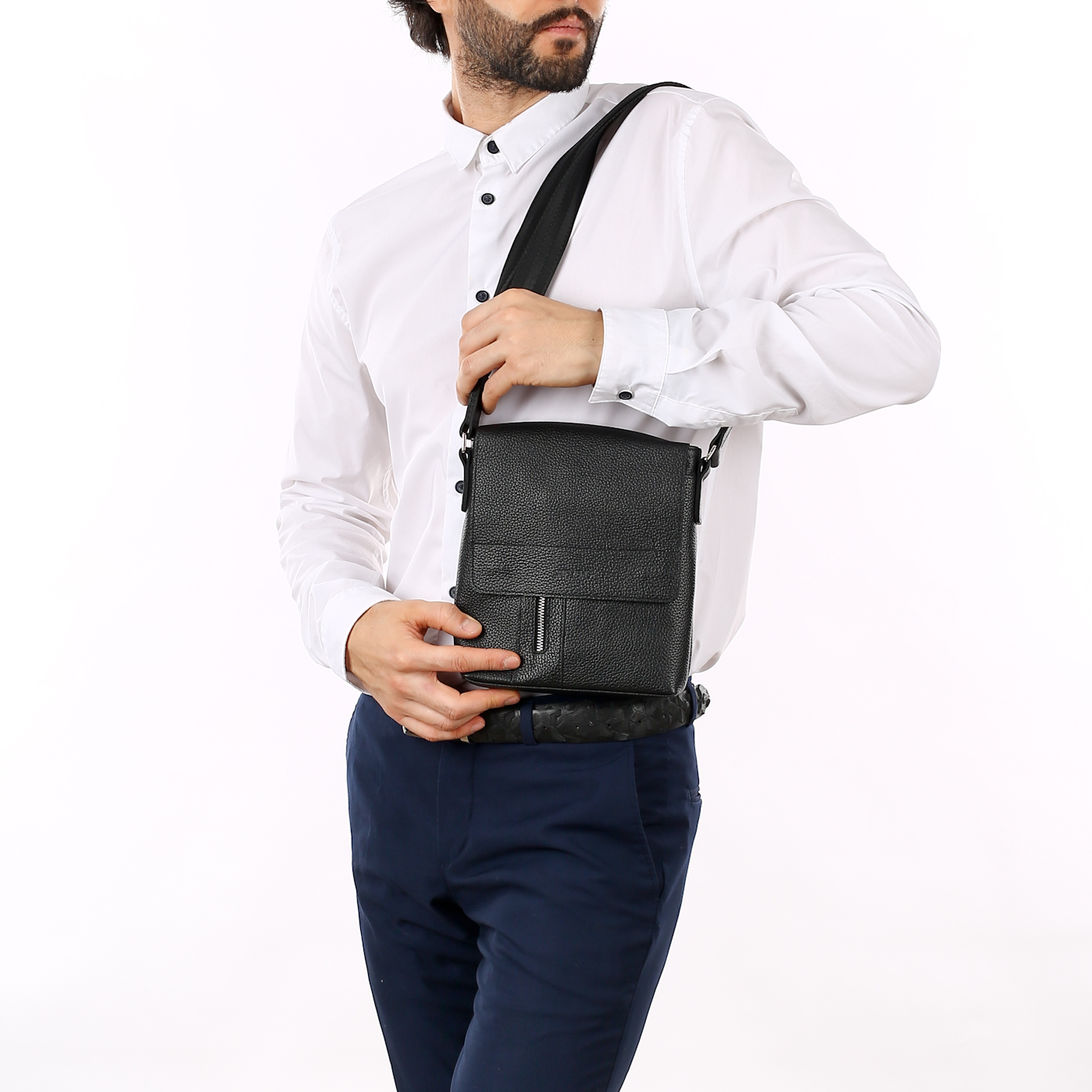 Сумки через плечо мужские кожаные черные