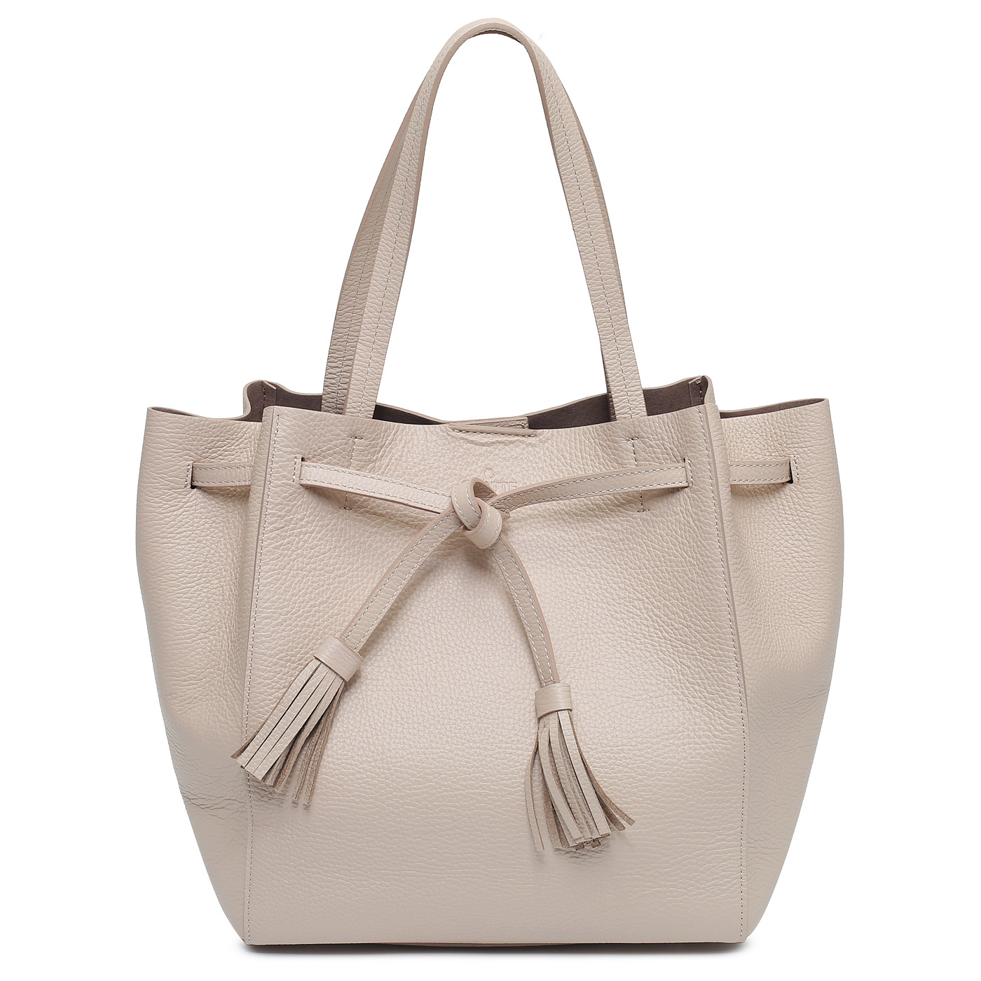 Комплектация: боковые ремешки с кисточками для изменения формы сумки, съемная косметичка